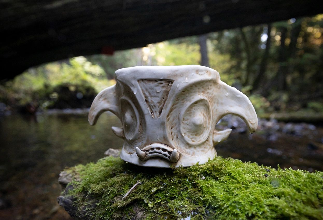 A multi-faced vertebrae paying homage to Tlingit carvings.